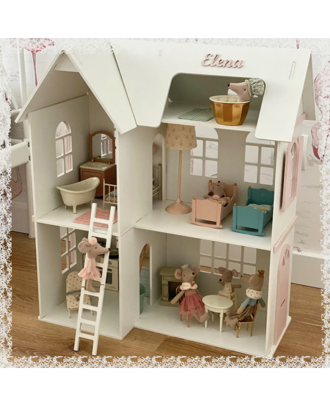 Kit to assemble the White model dollhouse. It is delivered WITHOUT painting. Remember to tell us the name!