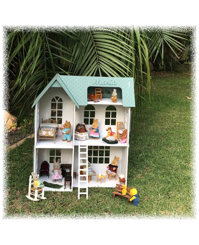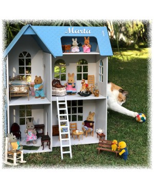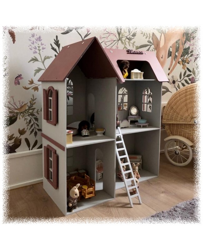 The dollhouse is made of MDF wood. This model is delivered UNPAINTED, so you can choose the combinations that you like the most. Ideally, use matte water-based paints and paint them with a roller. It is also recommended to paint before assembling, in this way the pieces that come together will be better.